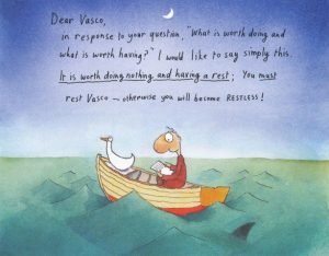 Rest, recharge and recuperate. When I was in India, I was repeatedly told, “Rest, Madam, rest”, and “You Westerners just don’t know how to rest.” Leunig agrees!